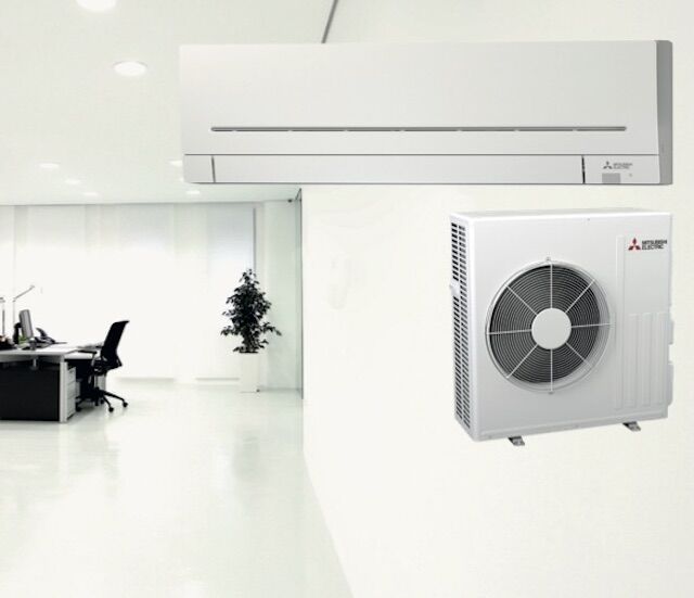 Vægmonteret AP60 Energieffektiv varmepumpe og køleanlæg til det mindre kontor, lager eller butik.